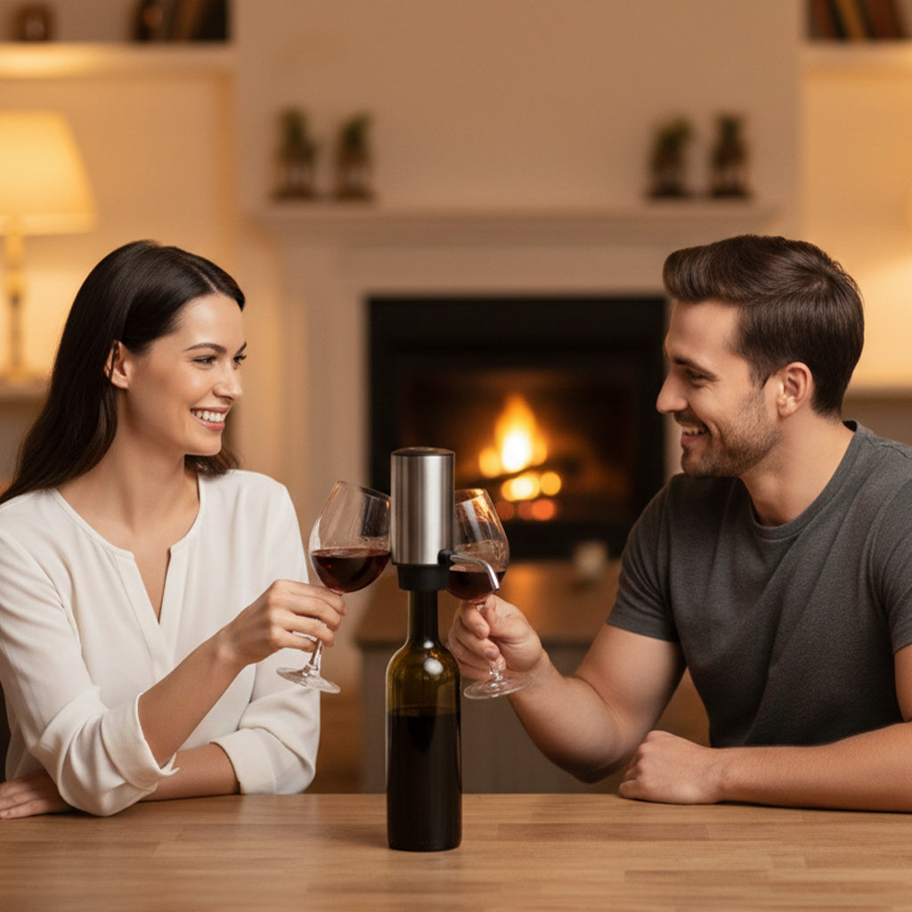 Not at all; we used a premium, ultra-quiet motor to ensure the atmosphere of your dinner party remains undisturbed. You’ll hear a very soft, satisfying hum as it perfectly aerates your pour.